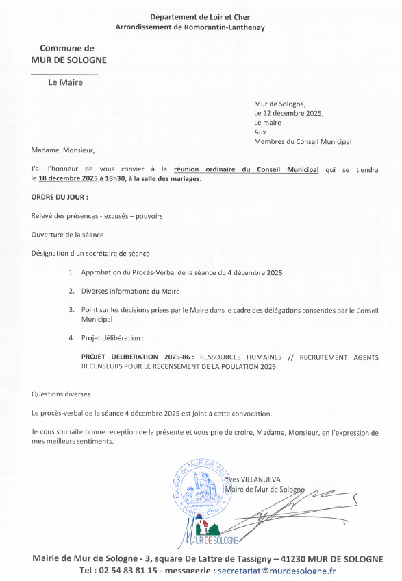 PROCHAIN CONSEIL MUNICIPAL : Jeudi 18 décembre 2025