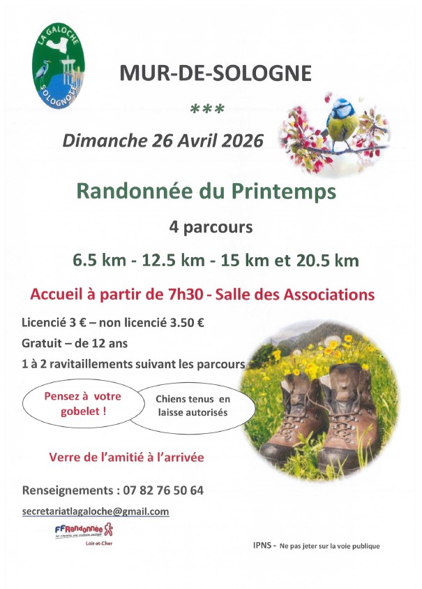 Le club organise une randonnée annuelle ouverte au public en avril sur la commune de Mur de Sologne.
