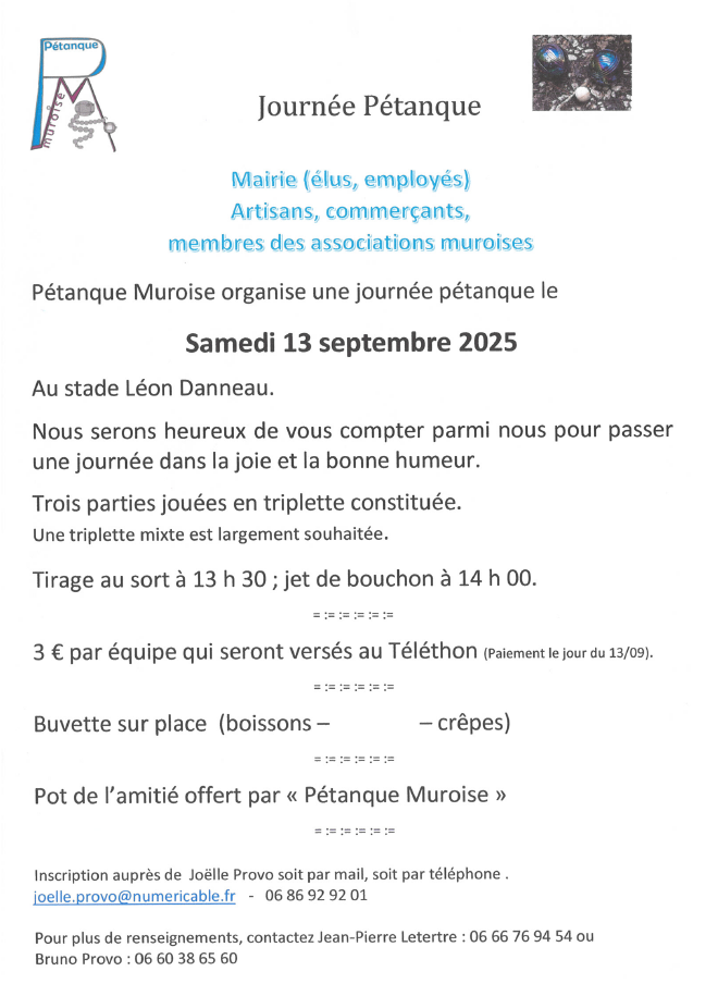 Concours en doublette inscriptions à partir de 13h30