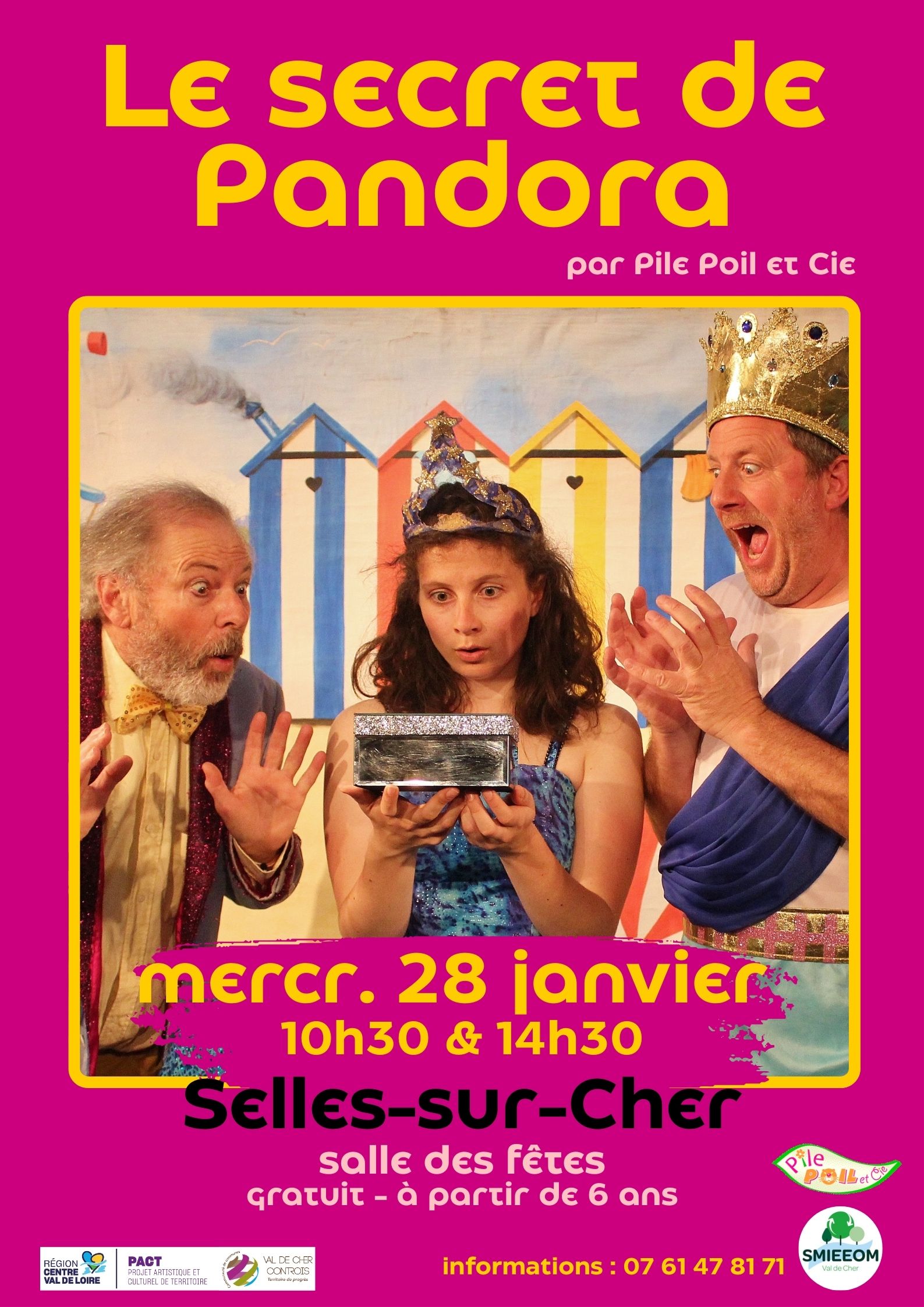 - Mercredi 28 janvier – salle des fêtes de Selles-sur-Cher : représentations à 10h30 et 14h30.